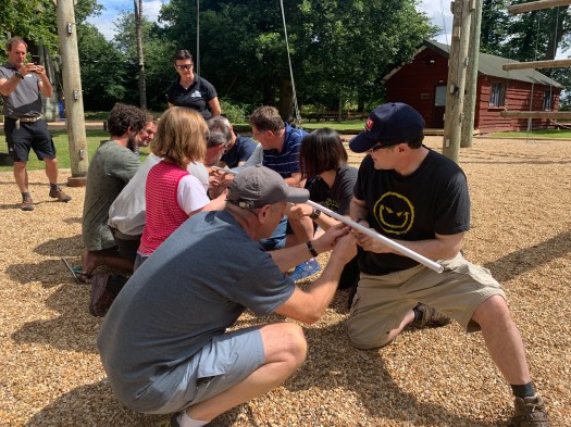 With the conclusion of the Belbin discussions, next up was the red/blue counter game. We were split into 3 teams and each given an envelope which contained a number of red and blue counters. There were different counters for each of the different teams. We were giving instructions which told us how playing a counter per round (there were 10 of these), we could earn/lose points depending on the combination of coloured counters played by the other team. My team (one) had a discussion and concluded that we were not one big team, but 3 separate teams. We would therefore look to maximise our points – whatever that took. Team two requested a meeting, where we discussed a strategy to maximise our points earning. I took this information back to my team, where we immediately decided to align for the next round. After another meeting with a representative from each of the other 2 teams, we again repeated the strategy, so that we were all on the same page. On returning back to my team, we had group consensus to go it alone, deviate from the strategy, and look to maximise our points. Sure enough after the 10 rounds, we came out victorious – or did we?! All 3 teams returned to the hut for a game debrief, where we were told that we weren’t intact 3 teams, but 1 single team. They definitely tricked us!!!