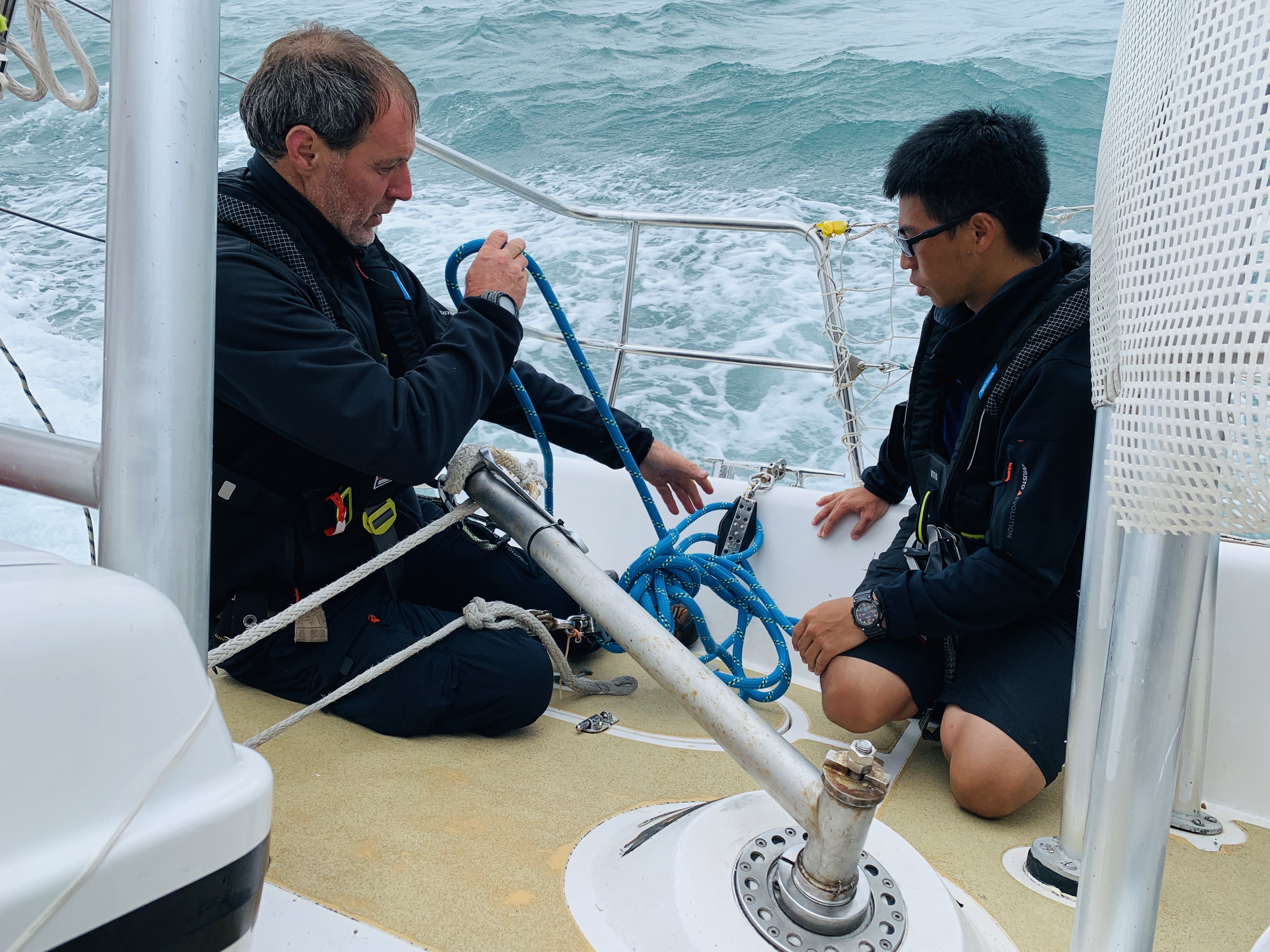 The rest of the standby watch passed pretty quickly, and before we knew it we were back on watch and on deck. We had a nice amount of wind, which while great for sailing was causing havoc with the halyards getting caught on the spreaders. At least it passed some time while we fixed this and tried to prevent it from happening again. This was the watch for fixing stuff, when next thing to happen was a hank breaking on staysail – a bit of a pain – given we were trying to get it ready for hoist. After a quick repair, we were able to hoist without any further issue.