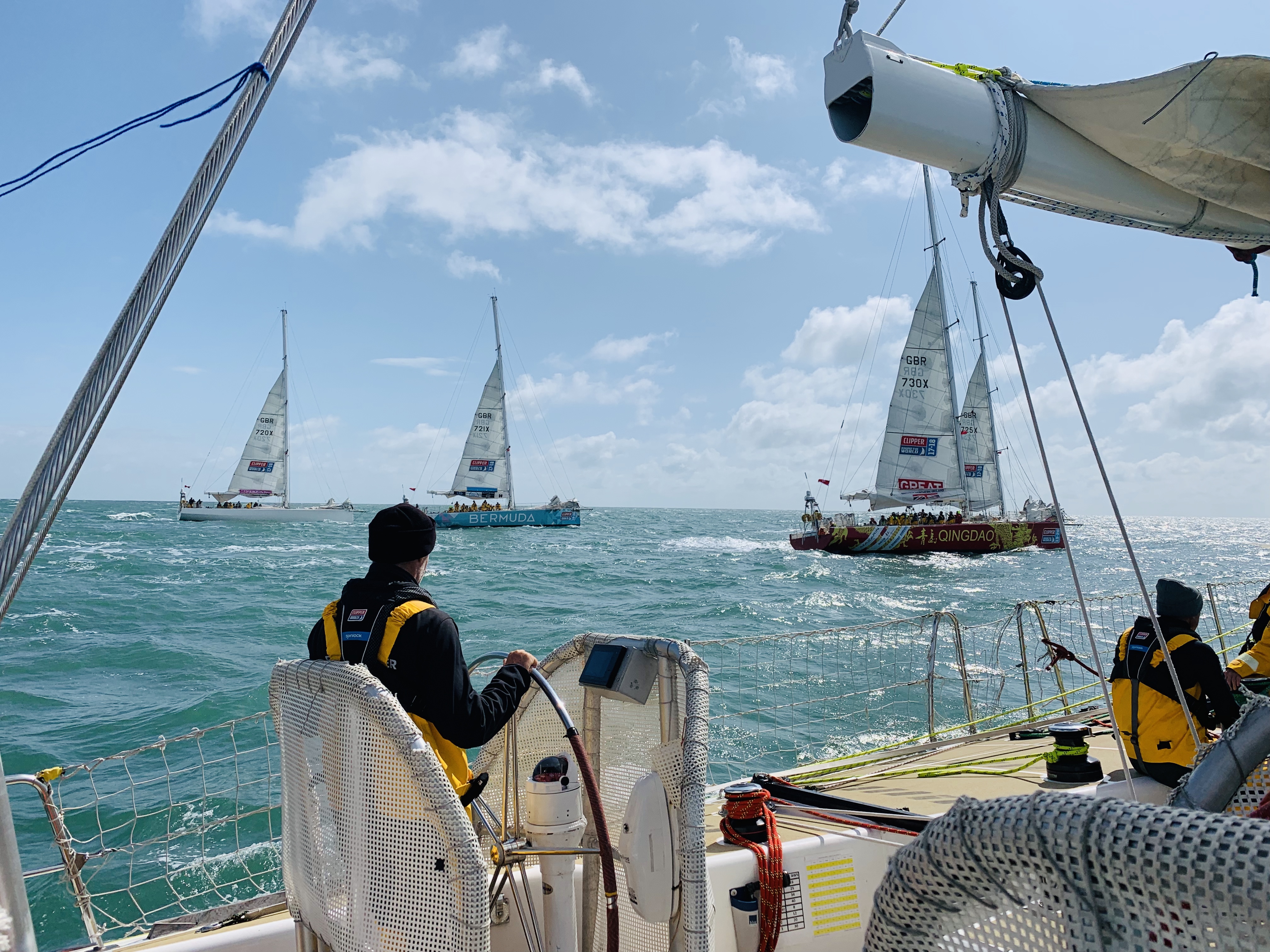 The race itself, and once we’d got going was very exciting. We made a great start, and with the rest of the fleet following behind as we raced towards the first markers – a buoy, and a fort, before rounding down the north side of the Isle of Wight to our next marker. The wind and tide combined meant that we got a real taste of what I suspect the proper race will be like – heeled at 40 degrees, sea rushing past your feet on the low side, and unfortunately a few instances of flogging sheets. It all became very real when hearing over the radio, that a fellow crew member on GoToBermuda had fallen badly, and was in need of the coast guard – my first (and I hope last) Clipper “mayday”. Thankfully we later learned that she didn’t have life threatening injuries!