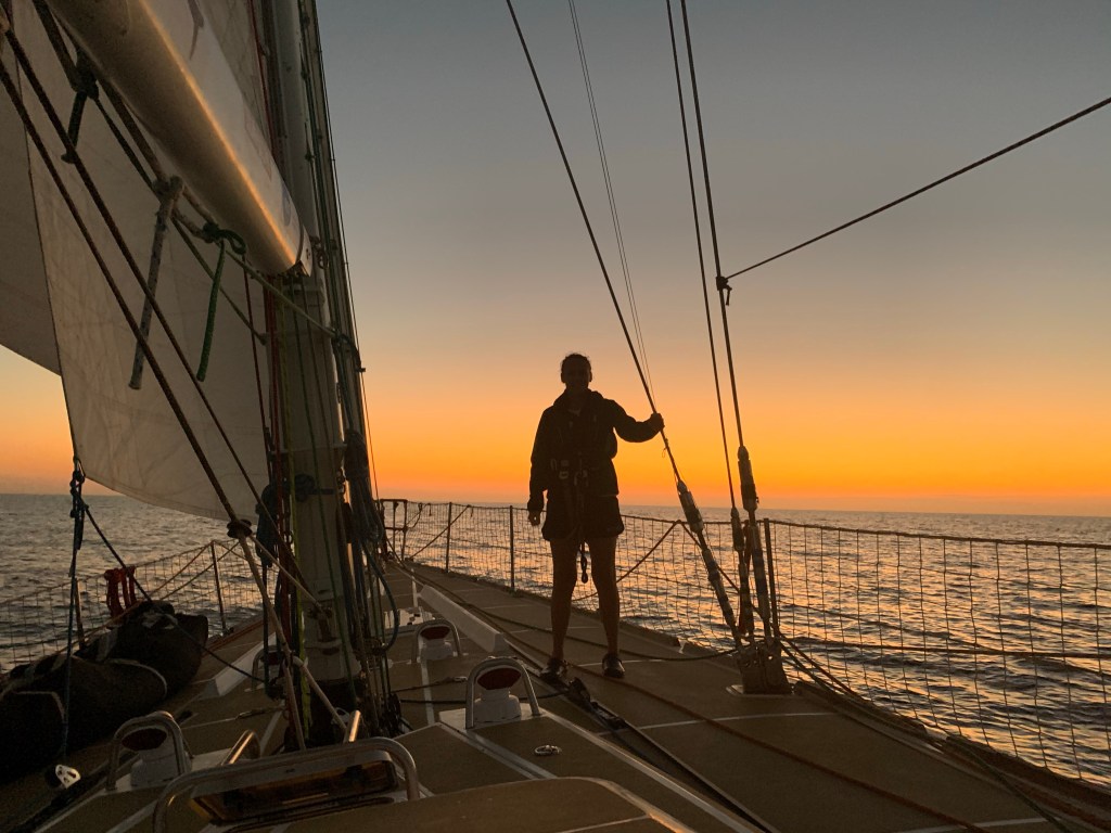 A few days in – it was extremely hot on deck and below. Whilst on-watch (which means on deck), the primary objective was to keep sheltered from the sun. The only time you’d really leave the shade would be to trim the sails or get to the helm – before retreating again.